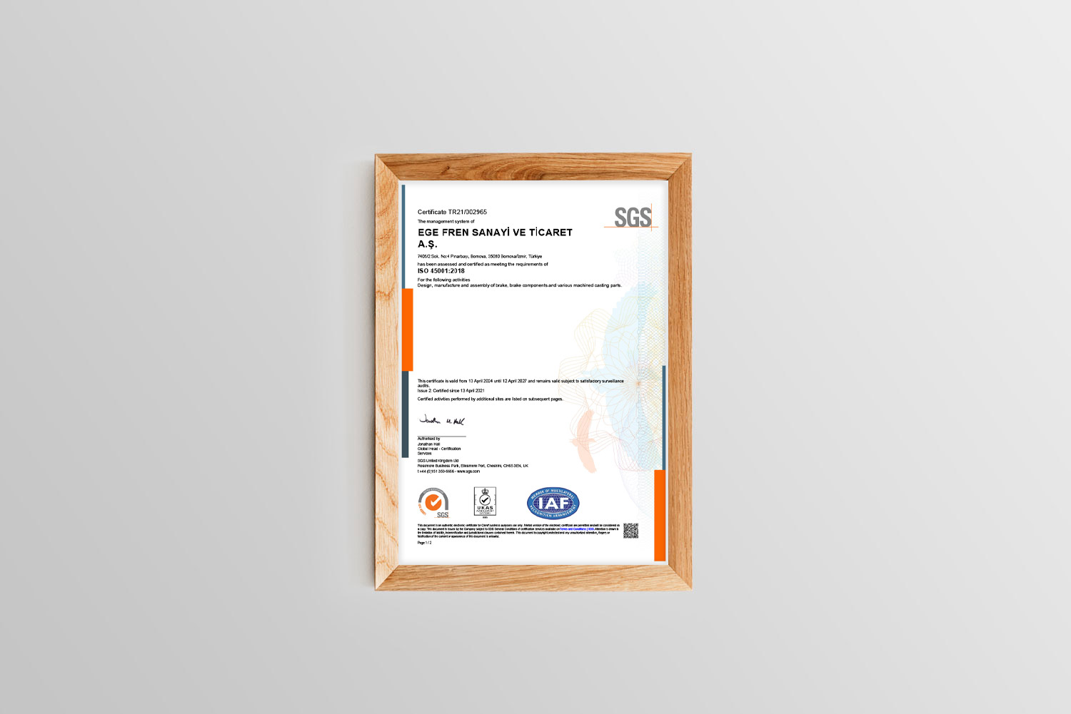 ISO 45001 Ege Serbest Bölge Fabrika